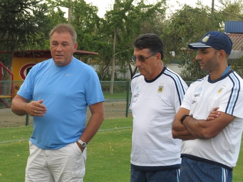Promediaba la práctica de Argentina, la última antes del trascendental enfrentamiento ante el conjunto peruano. Acompañado por Elvio Paolorosso, el preparador físico que secundó al Tata Martino en su paso por el banco de la Selección Mayor, apareció una figura eternamente vinculada con la Celeste y Blanca. Campeón del Mundo en México 1986 y subcampeón en Italia '90, ni más ni menos.