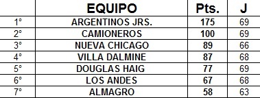 Clasificados: Argentinos Juniors, Camioneros, Nueva Chicago y Villa Dálmine.