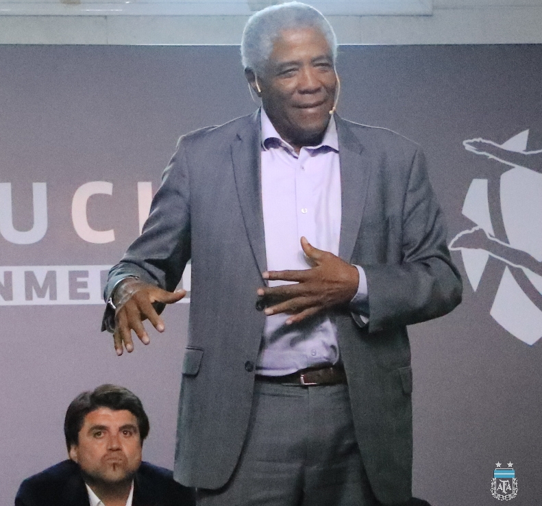 - "Les doy la bienvenida a Alejandro Domínguez, a los técnicos, exjugadores, al querido Alejandro Sabella, a esta que es la Casa del fútbol argentino".