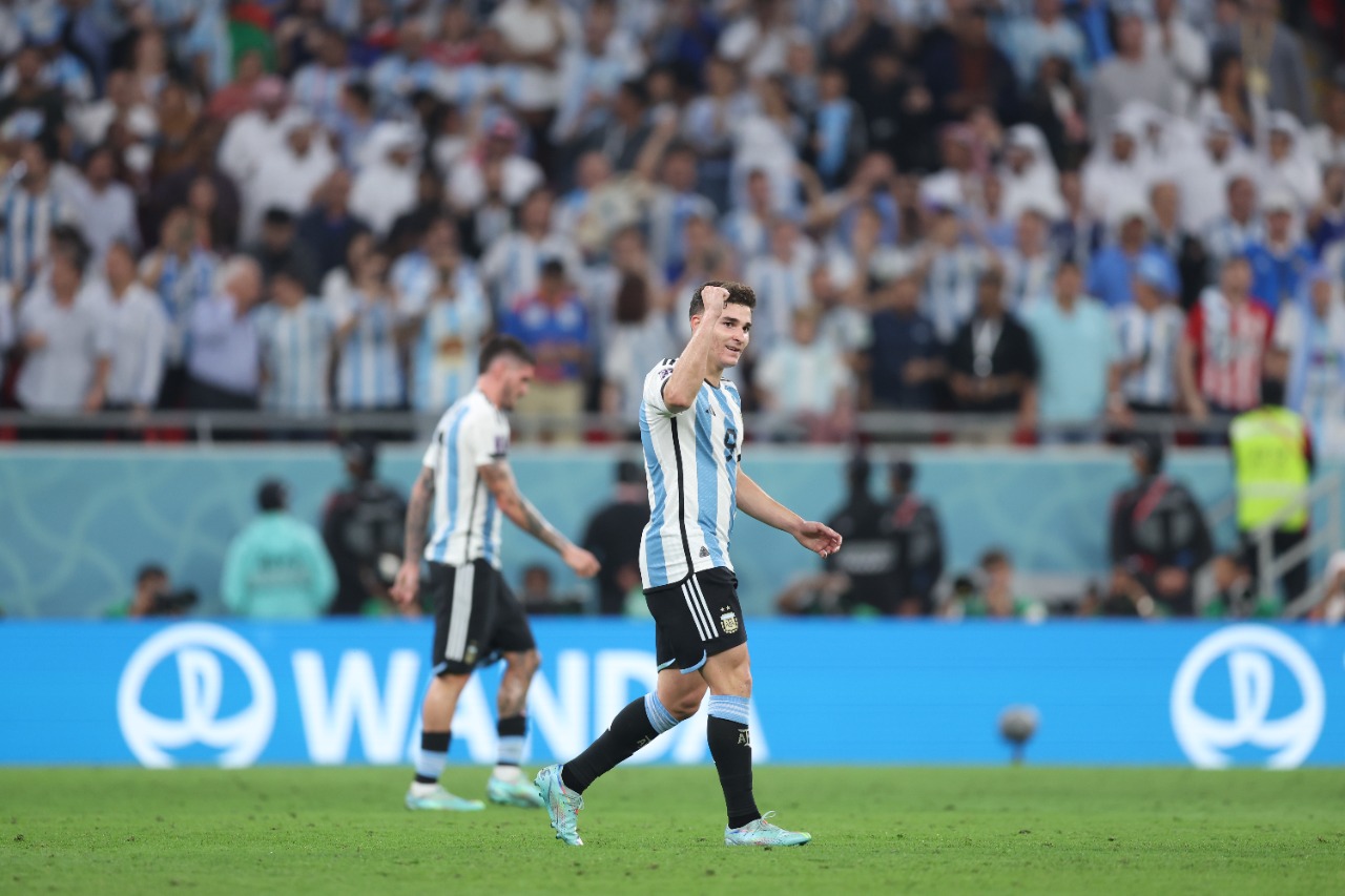 El segundo golpe llegó en el complemento. Luego de una presión alta agobiante de Álvarez y Rodrigo de Paul, Argentina produjo el error en salida de Australia, robó la pelota dentro del área rival y Julián puso el partido 2-0.