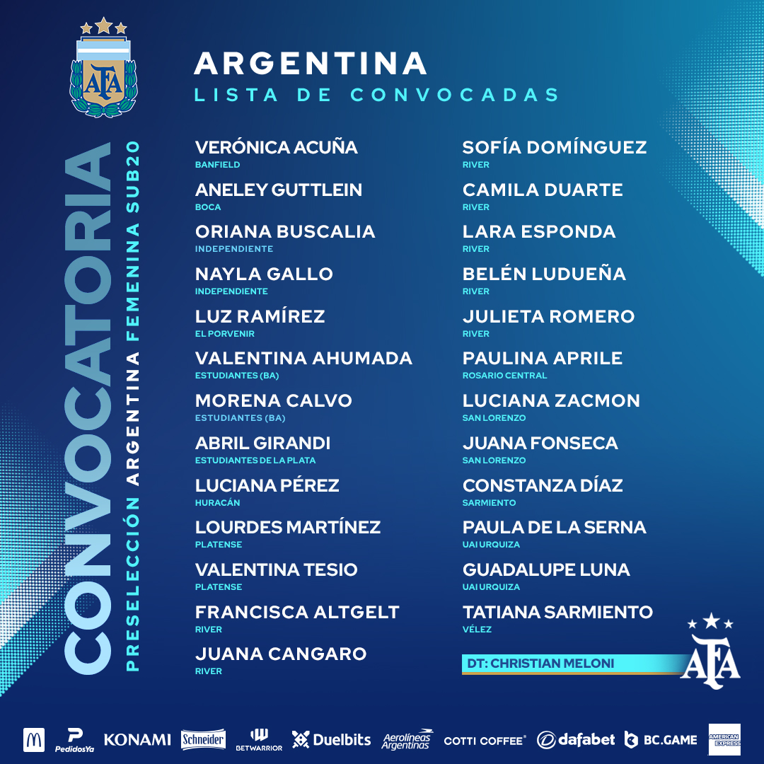 El trabajo no se detiene para las jóvenes futbolistas que ansían representar a la camiseta Celeste y Blanca en los Sudamericanos del próximo año. Por eso, el entrenador Christian Meloni realizó una nueva citación para las preselecciones Sub 17 y Sub 20, que entrenan esta semana en el Predio Lionel Messi.