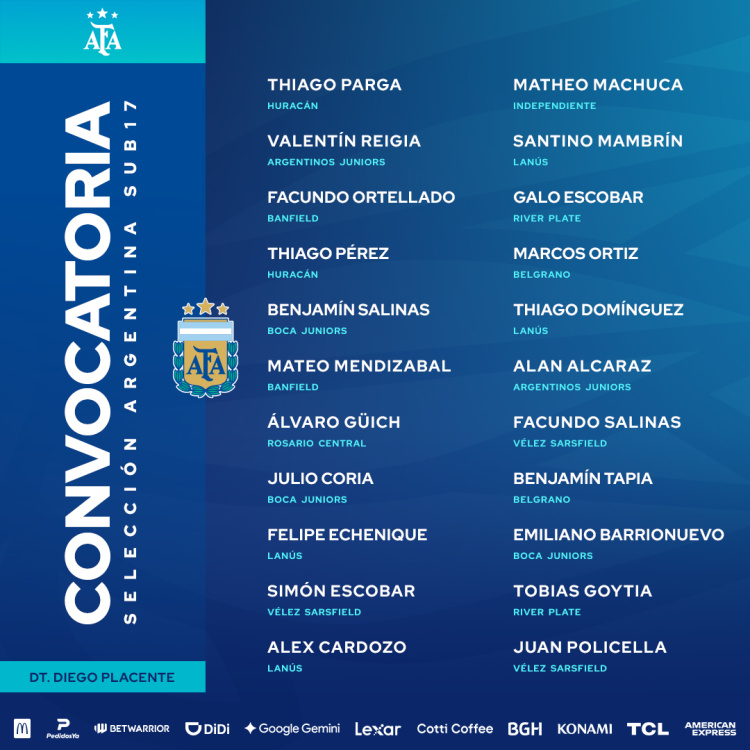 Selección Sub 17: lista de convocados para el triangular internacional
