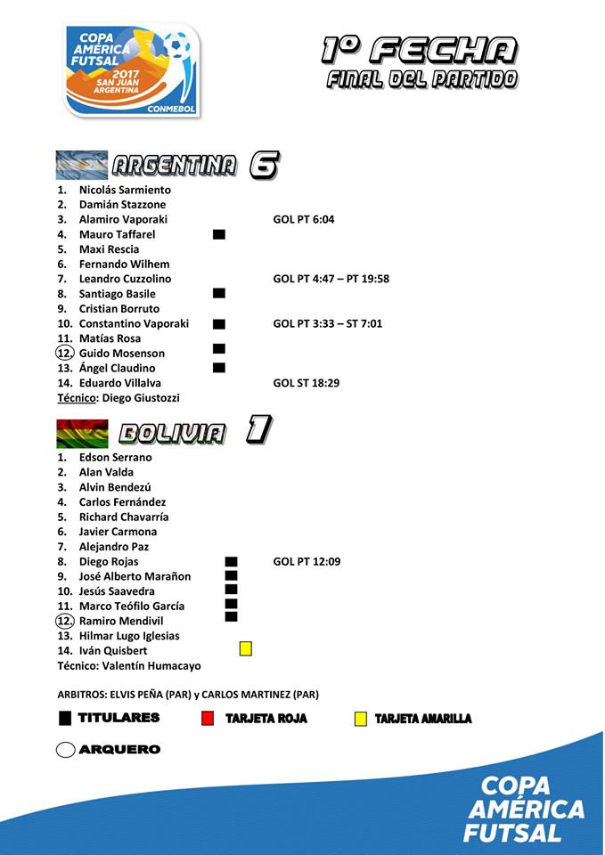 #CopaAméricaFutsal ¡Ganó @Argentina! El equipo de Diego Giustozzi venció a #Boliva por 6 a 1 ?? pic.twitter.com/46LfJyMpsh