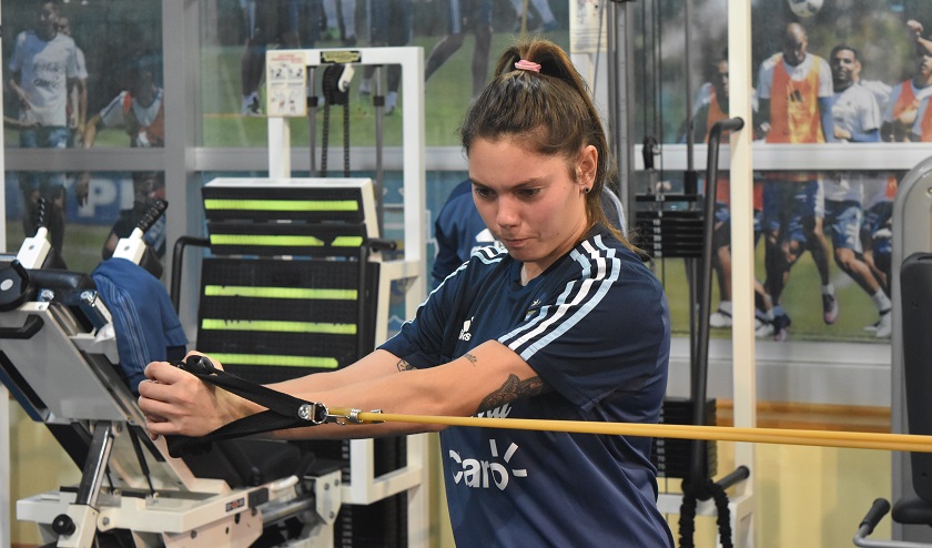 El plantel trabajó por la tarde durante dos horas. Primero, en uno de los gimnasios bajo las indicaciones del Profesor Osvaldo Conte. Luego realizó una práctica de fútbol de 45 minutos, en la que participaron todas las jugadoras que están concentradas en el predio.