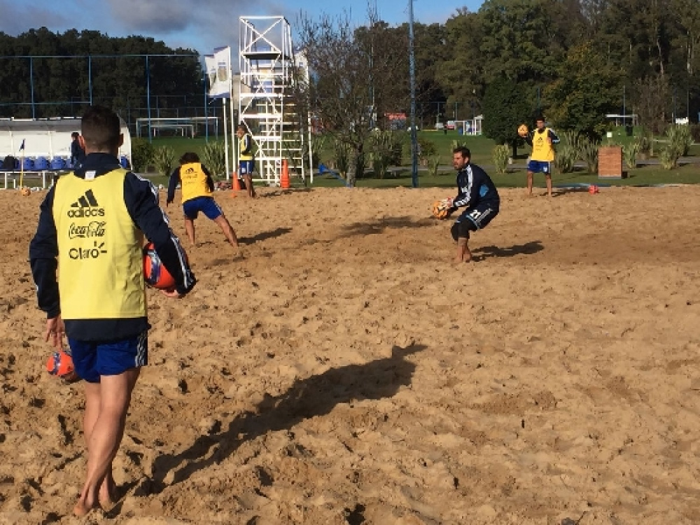 Bajo un sol radiante, el Seleccionado Argentino de Fútbol Playa se reunió a las 10 para comenzar su trabajo del día. Luego de la entrada en calor, llegaron los trabajos de velocidad, definición y resistencia en la arena para los seleccionados. Algunos jugadores como Cristian Gomez Cuevas practicaron chilenas frente al arco.