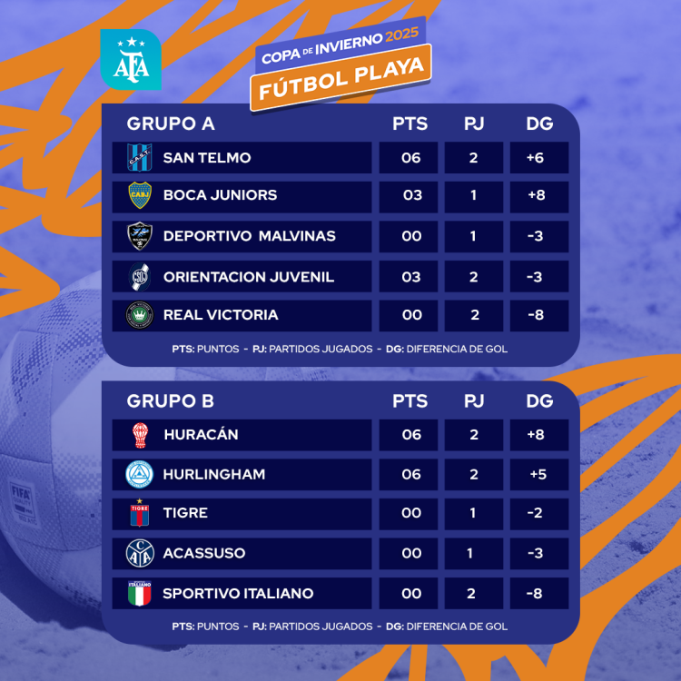 GRUPO A, Real Victoria, Boca Juniors, Orientación Juvenil, San Telmo y Dep. Malvinas