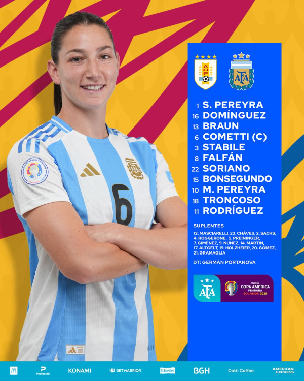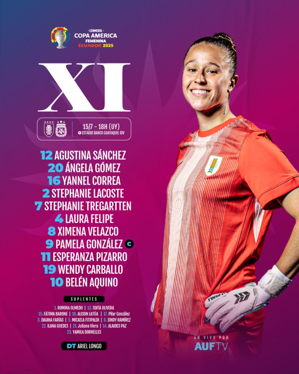 La Selección Femenina, dirigida por Germán Portanova, triunfó 1-0 en su debut en la Copa América frente a Uruguay. El encuentro se disputó en el Estadio Independiente del Valle, en Quito, contó con el arbitraje de Zulma Quiñónez (Paraguay) y televisación de DSports.