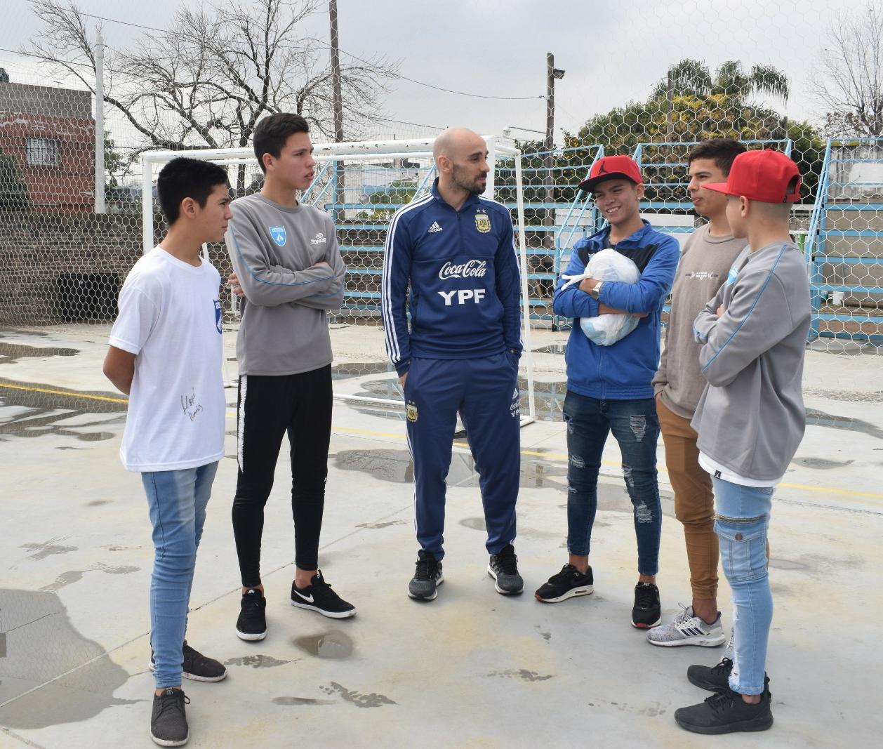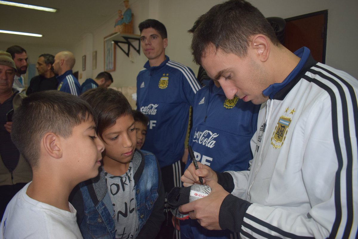 Luego de la práctica matutina en el estadio cubiero Claudio Newell, en la antesala del segundo amistoso ante Francia, el técnico Matías Lucuix y los jugadores Santiago Basile, Damián Stazzone y Andrés Santos visitaron las instalaciones del club María Madre de la Lata de Rosario y les llevaron regalos de la Selección Argentina a los más chicos.