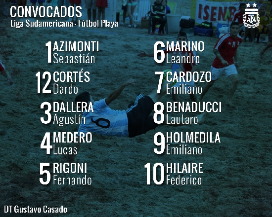 La Liga Sudamericana se jugará del 20 al 24 de septiembre con la participación de la Selección Argentina Mayor de Fútbol Playa y de la Sub 20. En la Zona Sur, que se realizará en Asunción, participarán: Bolivia, Chile, Paraguay, Uruguay y Argentina.