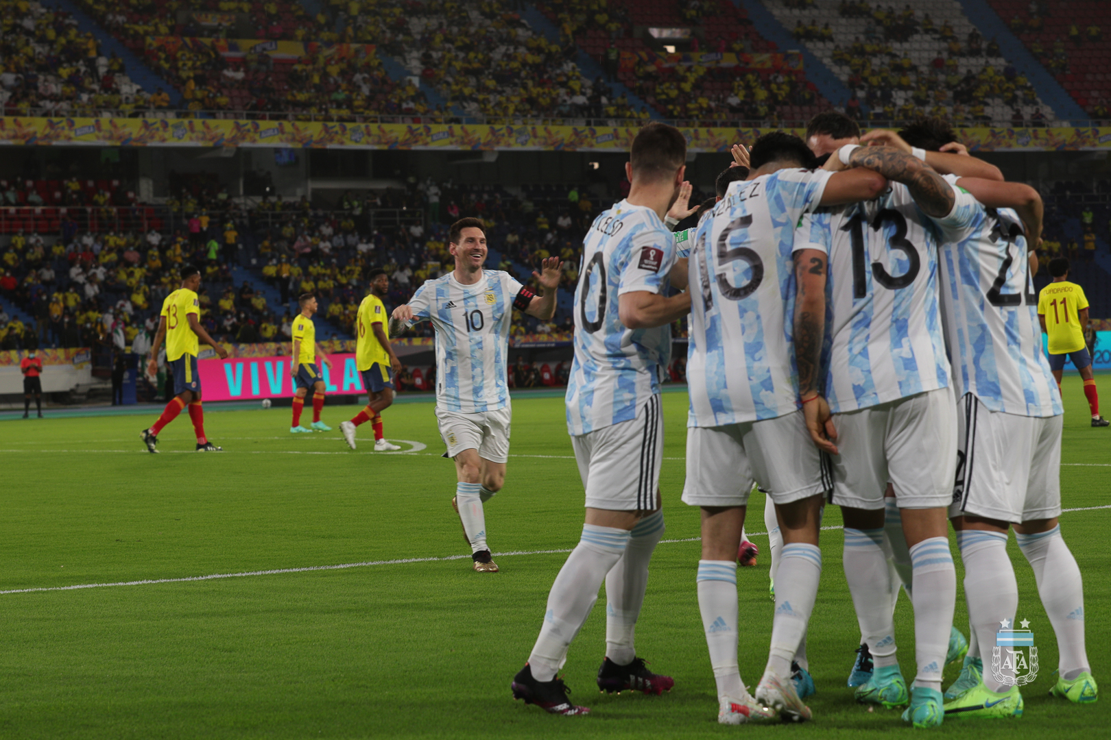 Argentina igualó 2-2 ante Colombia como visitante. El equipo dirigido por Lionel Scaloni tuvo un buen primer tiempo donde controló la pelota y dominó el encuentro desde el principio. El primer gol llegó a los dos minutos, tras un preciso centro de Rodrigo De Paul y un gran cabezazo de Cristian Romero, quien marcó por primera vez con la Albiceleste. A pesar del 1-0 a favor, Argentina continuó buscando el arco de David Ospina, con el equipo permanentemente posicionado en el campo rival. Así fue que a los siete minutos, luego de una muy buena jugada individual, Leandro Paredes marcó un golazo.