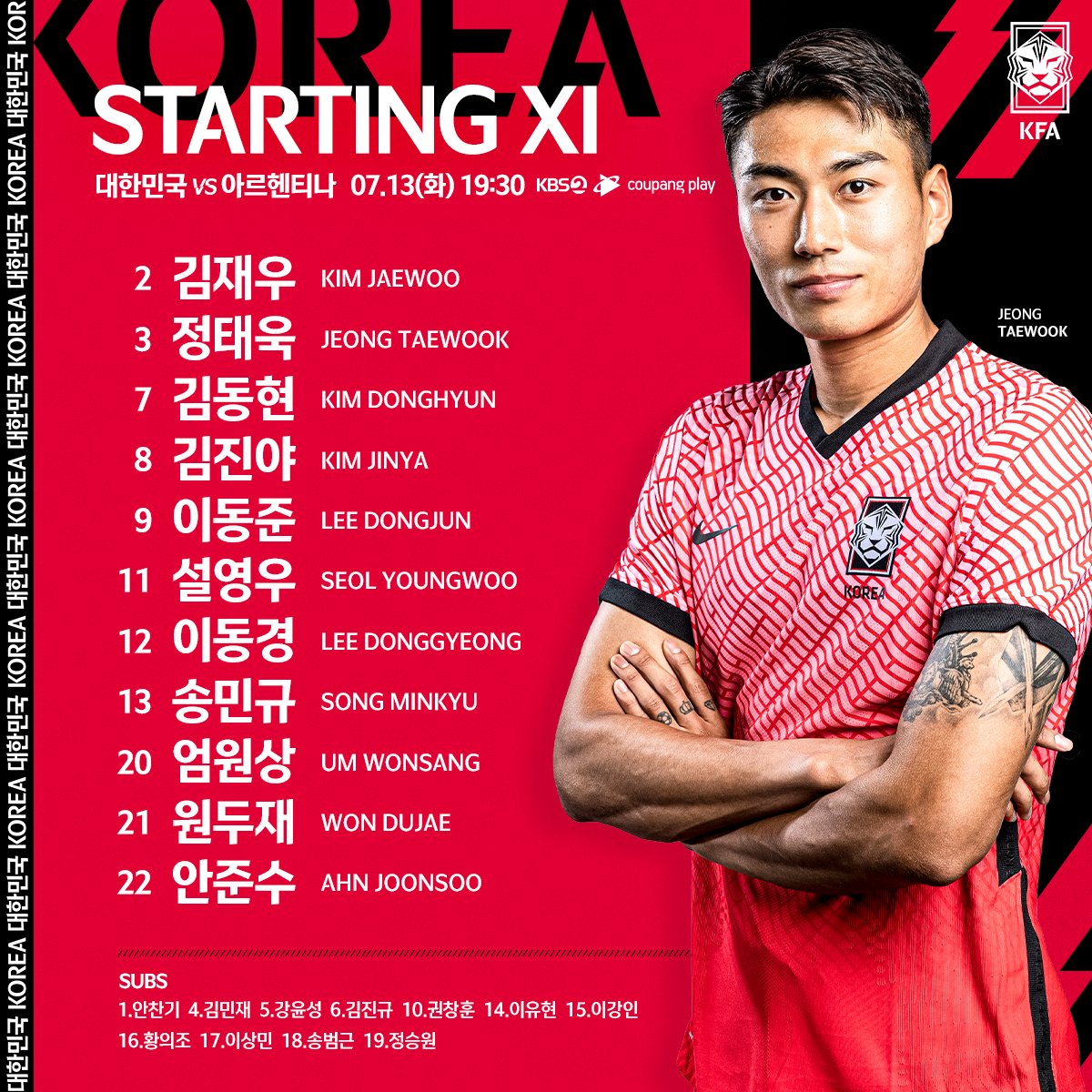 En la segunda mitad, Fernando Batista movió el banco de suplentes con los ingresos de Thiago Almada, Ezequiel Ponce y Francisco Ortega. A los nueve minutos, Fernando Valenzuela puso nuevamente en ventaja al conjunto nacional con un golazo: tras recibir un cambio de frente de Almada, la controló en el vértice del área y con un preciso zurdazo la clavó de un ángulo. Con el resultado a su favor, la Albiceleste mantuvo la intesidad y el técnico argentino aprovechó el amistoso para darle minutos a más juveniles y entraron Marcelo Herrera y Tomás Belmonte. Sin embargo, sobre el final del encuentro, Um Wonsang tomó un rebote a la salida de un córner y, desde afuera del área, marcó el 2-2 definitivo.