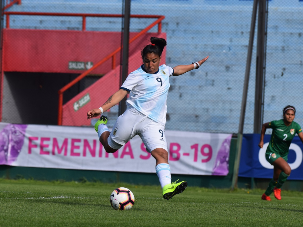 Rocío Correa anotó este lunes los dos primeros tantos del triunfo argentino por 5-0 ante Bolivia. La delantera de San Lorenzo ya tiene experiencia vistiendo la Albiceleste: a pesar de su corta edad ha participado de algunas convocatorias de la Selección Mayor, luciendo su potente remate como marca registrada.