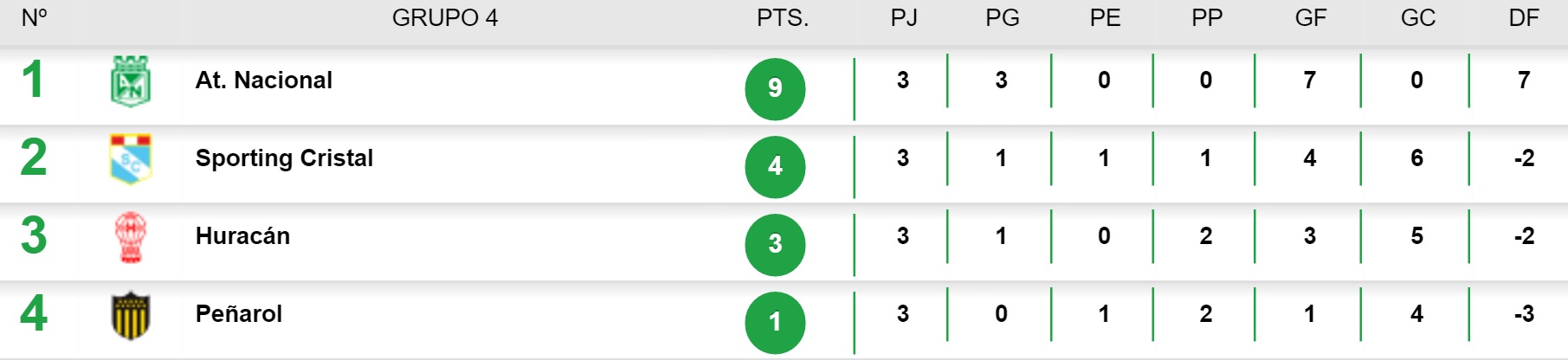 Cruzando la línea de cal se paró Sporting Cristal, que igualó 1-1 con Peñarol y perdió 3-0 ante el conjunto colombiano, que lidera el Grupo 4.