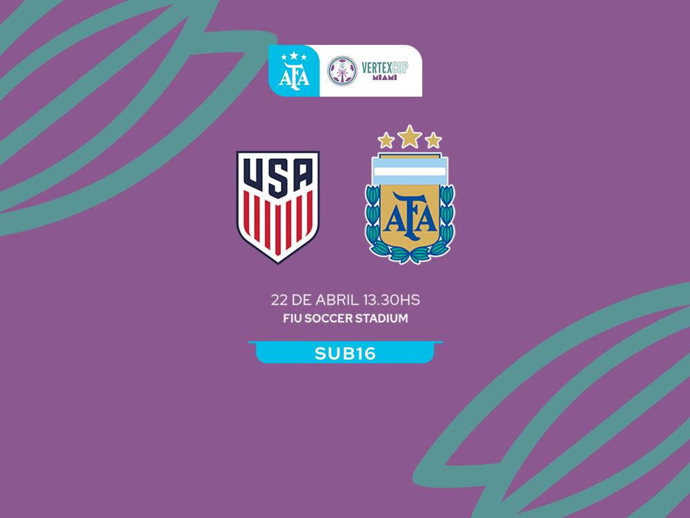 En su tercer compromiso por la Copa Vertex en Miami, la Selección Argentina Sub 16 se medirá hoy ante el local Estados Unidos. El encuentro, que comenzará a las 13.30, se llevará a cabo en el el FIU Soccer Stadium y contará con la transmisión de AFA Estudio y LPF Play.