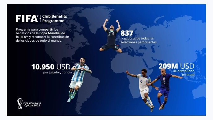 Tras la celebración del Mundial de mayor éxito de la historia, 440 clubes procedentes de 51 federaciones miembro y de las seis confederaciones se beneficiarán del Programa de Ayudas a Clubes. Las entidades percibirán un porcentaje de los ingresos correspondiente a la cesión de jugadores para participar en la fase final que tuvo lugar en Catar. De este modo, se confirman los beneficios que aporta la máxima competición de la FIFA al fútbol de clubes, así como el papel fundamental que desempeñan los clubes en el desarrollo y la cesión de jugadores para que estos representen a sus selecciones nacionales.
