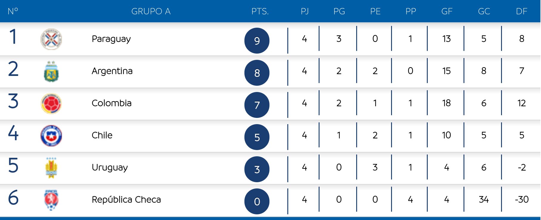 Chile igualó 1-1 frente a Uruguay en la jornada inicial, superó 7-0 a República Checa y perdió 2-0 contra Paraguay. Por su parte, la Albiceleste se impuso por 3 a 2 sobre Colombia en el debut y luego empató 2-2 ante Uruguay para después vencer al conjunto checo.