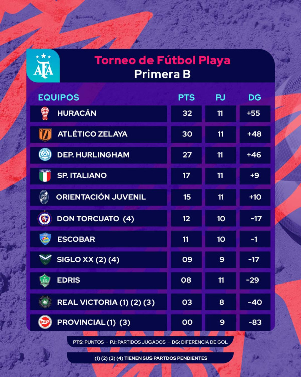Tras la disputa parcial de la fecha 12, el torneo tiene a Huracán como líder y a Atlético Zelaya y Dep. Hurlingham como escoltas.