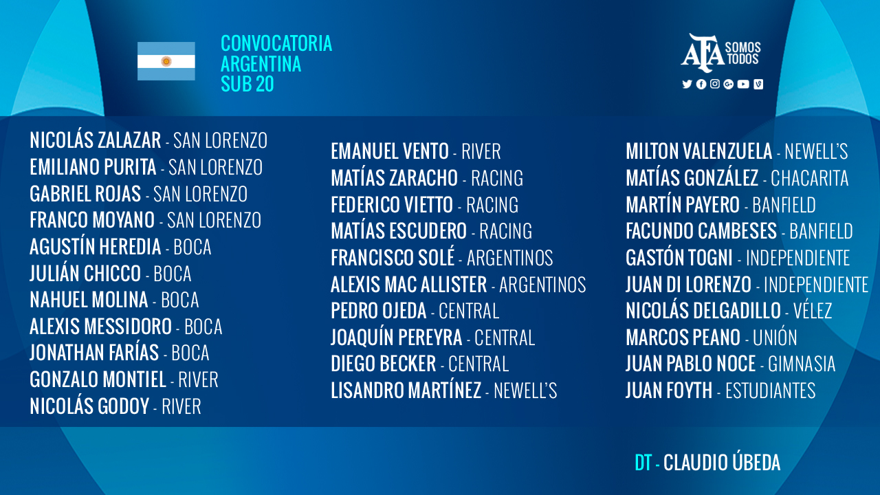 Se completó en Ezeiza la primera semana de entrenamiento para la Selección Sub 20, que el lunes arrancó una nueva etapa, encabezada por el cuerpo técnico conformado por Claudio Úbeda (entrenador), Gerardo Salorio (preparador físico), Fernando Batista (ayudante de campo) y Gustavo Piñero (entrenador de arqueros), en preparación para el Sudamericano de la categoría (del 13 de enero al 5 de febrero en Ecuador), certamen que otorgará cuatro plazas para el Mundial Sub 20, a jugarse en Corea del Sur a partir del mes de junio. Una vez que el motor se puso en marcha, no pisa el freno: esta mañana, nueva práctica del plantel en el complejo de Ezeiza.