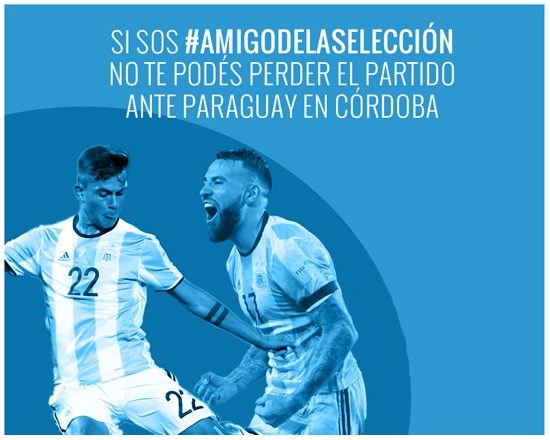 Las plateas para Argentina-Paraguay en Córdoba se agotaron, pero la Asociación del Fútbol Argentino te reservó un lugar. Sos #AmigoDeLaSelección y no podés quedarte afuera. Para eso, participá de nuestro concurso a través de nuestras redes sociales.