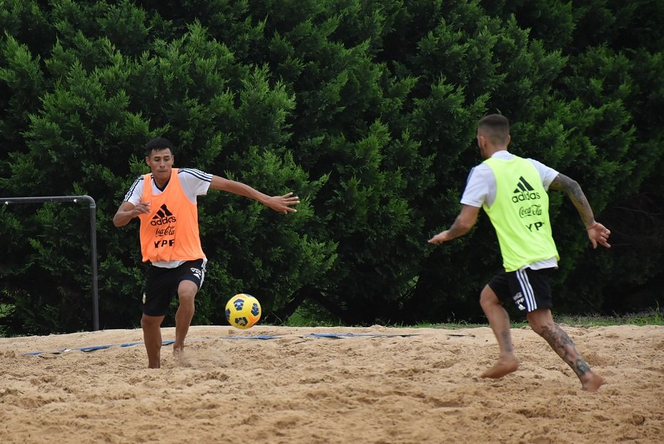 El plantel se entrenó de 8.30 a 11.30 en la cancha de arena que posee el Predio en Ezeiza. La Selección Argentina de Fútbol Playa viene de disputar la Liga Evolución en Santa Fe donde se quedó con el primer lugar entre las selecciones mayores y comenzó la semana pasada la preparación para el torneo continental.