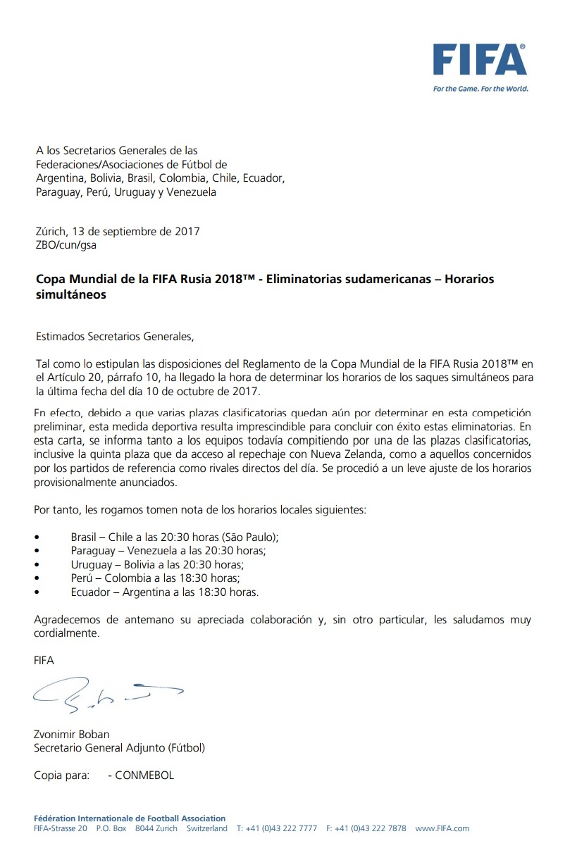Comunicado de la FIFA