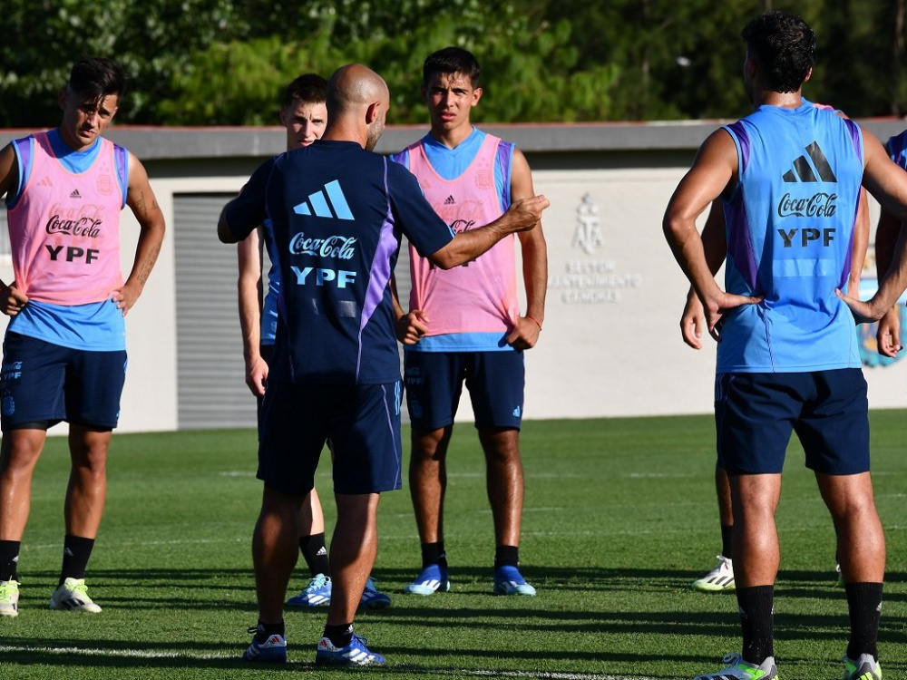 En la práctica de hoy se sumó el jugador de River, Claudio Echeverri, quien el sábado había llegado al país, convocado por Mascherano para integrar el plantel que viajará a Venezuela para el Torneo Preolímpico.