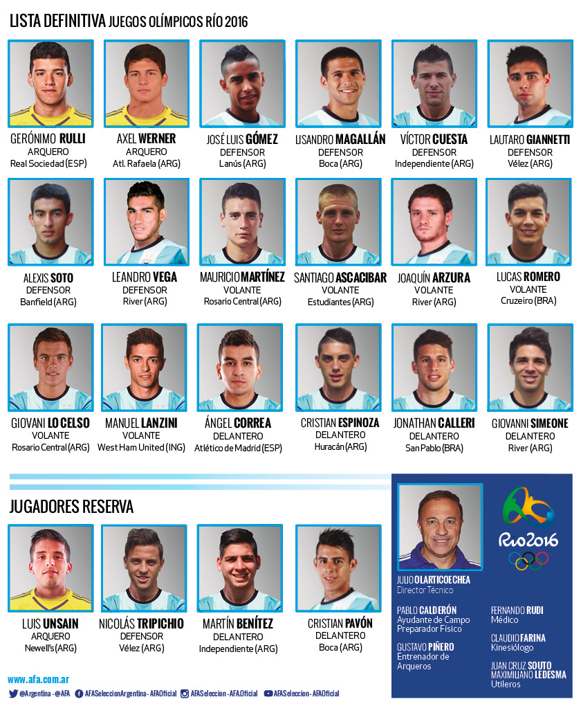 Aquí están, éstos son los futbolistas que representarán a nuestro país en los primeros Juegos Olímpicos que se realizarán en Sudamérica.