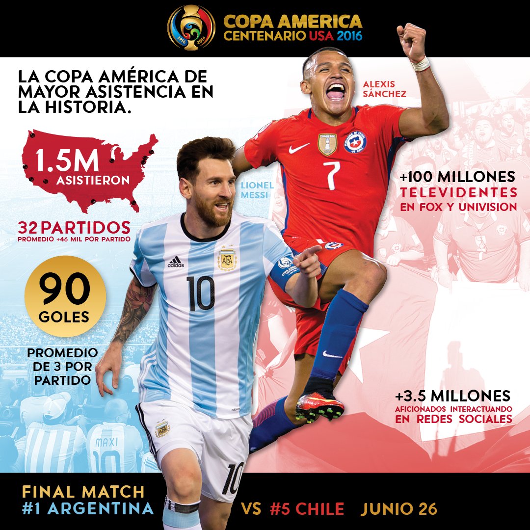 Con el trofeo y la pelota de la final adornando el escenario, Domínguez anticipó que "hemos desafiado a la UEFA para un duelo entre el campeón de la Copa América y la Eurocopa 2016". Cerrando la conferencia de prensa, el Presidente de la CONMEBOL ratificó que "la próxima Copa América se realizará en Brasil".