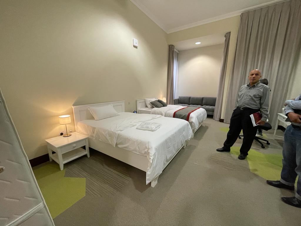 Los representantes de la universidad qatarí guiaron al grupo hasta el primer piso y mostraron una habitación terminada tal como serán todas para el mes de noviembre. Luego del periplo por el edificio, la delegación miró el denominado club house, proyectado para el divertimento y esparcimiento de futbolistas con sus familiares.