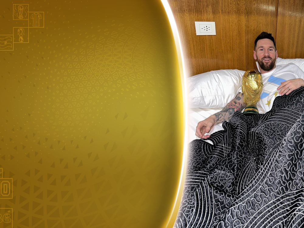 "Buen día", fue la frase que eligió Lionel Messi para abrir una fecha histórica para el fútbol argentino, y la acompañó con una foto con la Copa del Mundo en la cama, y otra en el mismo lugar, ya despierto, y con un mate en su mano.