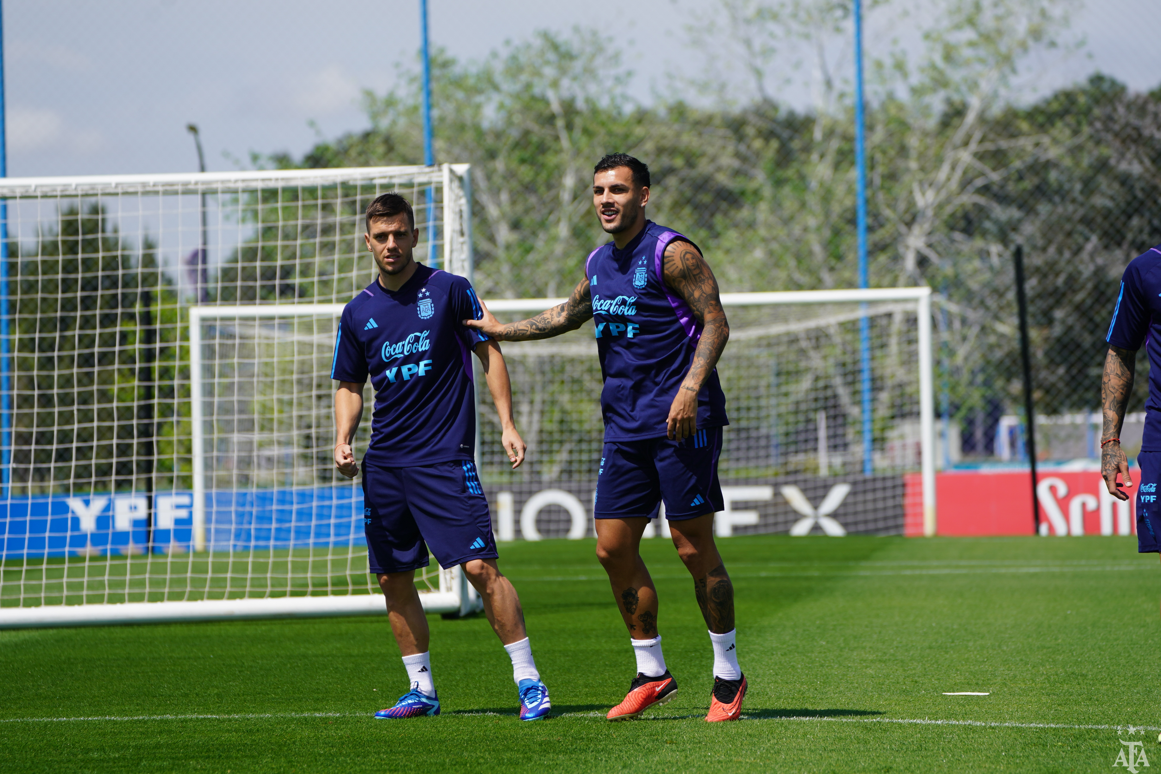 El seleccionado argentino realizó los últimos movimientos antes de partir hacia Lima. Hicieron gimnasio, entrada en calor en campo delante de los medios. Despues fútbol reducido, trabajos tácticos y pelota parada al final.