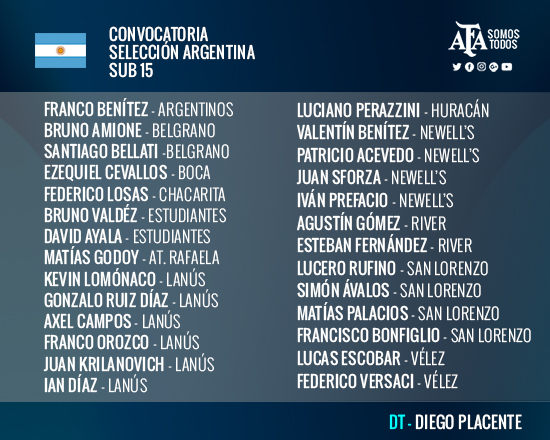 A continuación, la lista de jugadores convocados por el técnico Diego Placente.
