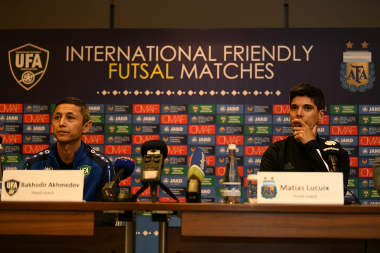 La conferencia se realizó el lunes por la mañana, junto al seleccionador uzbeko, BakhodirAkhemedov, en uno de los salones del Hotel Hilton de Taskent, lugar donde se encuentra alojada la delegación argentina en espera de los partidos que se disputan el 2 y 3 de febrero desde las 10.30 (18.30 hora local).