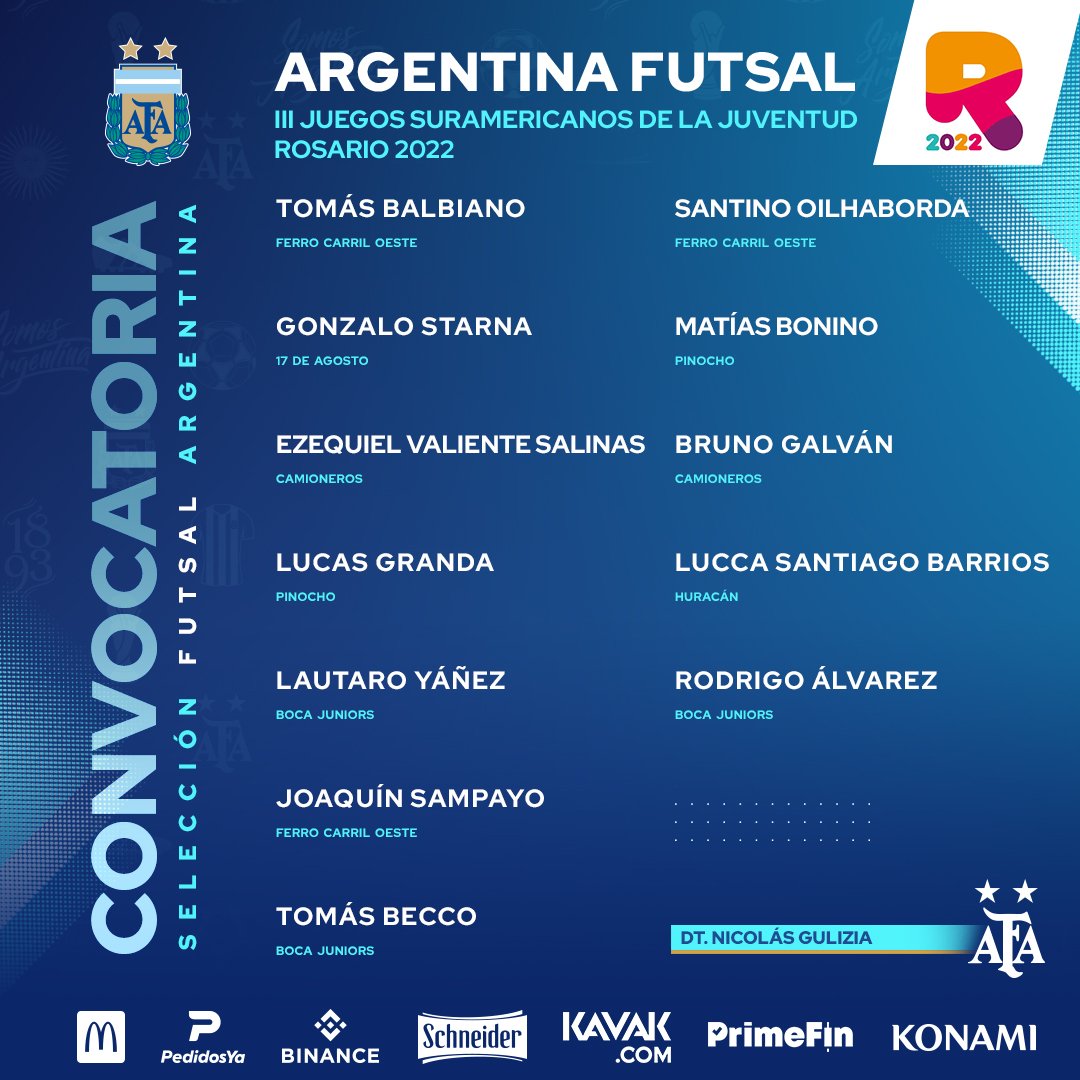 Ayer dieron inicio los Juegos Suramericanos de la Juventud en la Ciudad de Rosario, que continuarán hasta el día 8 de mayo. El Futsal competirá desde el 4 al 8. Esta es la tercera edición de la competencia organizada por ODESUR (Organización Deportiva Suramericana), de la que Argentina forma parte a través del COA (Comité Olímpico Argentino).