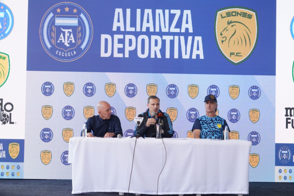 En el marco del proyecto AFA Internacional, la Asociación del Fútbol Argentino presentó en Medellin, su primera escuela de fútbol en Latinoamérica, en alianza con el club Itagüí Leones FC.