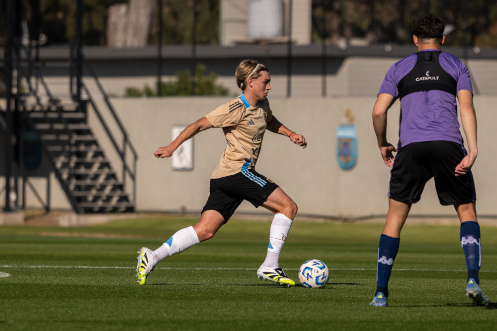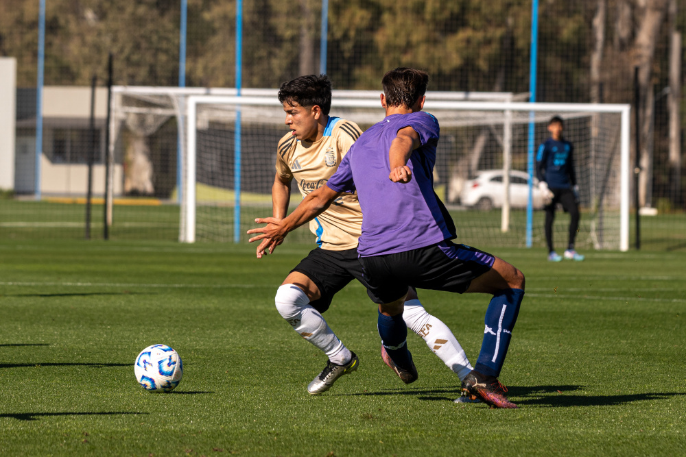 Tras consagrarse campeón hace unas semanas en el COTIF, el plantel juvenil retomó esta semana al trabajo de cara al Mundial de la categoría que se disputará en Qatar del 5 al 27 de noviembre. Esta mañana, el equipo dirigido por Diego Placente realizó un ensayo futbolístico ante Racing en el predio Lionel Andrés Messi. Durante el encuentro, que constó de dos tiempos, el técnico realizó disintos cambios para observar jugadores, seguir repasando conceptos y aceitando movimientos de cara a la Copa del Mundo. Tras el entrenamiento, el plantel quedó libre.