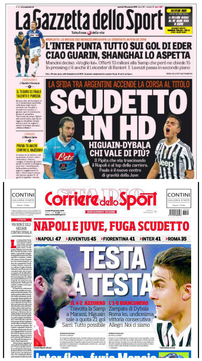 El duelo de goleadores reflejado en las tapas de los diarios italianos