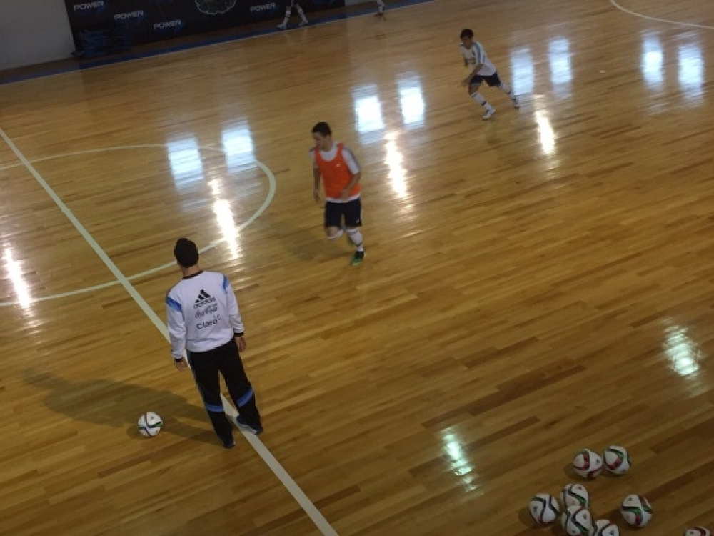 A las 16 sonó la alarma para los chicos del Sub 20 de Futsal. Inmediatamente se dirigieron al recinto especializado que posee el Predio Julio Grondona para tener su sesión de entrenamiento diario. Diego Giustozzi, el entrenador, les preparó una tarde a pura pelota. Claro, no sin antes precalentar con colchonetas y estirar bien los músculos. Luego, sí, llegó la hora de cuidar la bola...