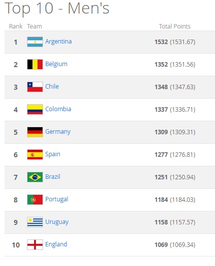 La Selección Nacional acumula un total de 1532 unidades en el ranking del máximo ente organizador del fútbol mundial. Por su parte, Bélgica contabiliza 1352 puntos. Por detrás, Chile suma 1348 unidades.
