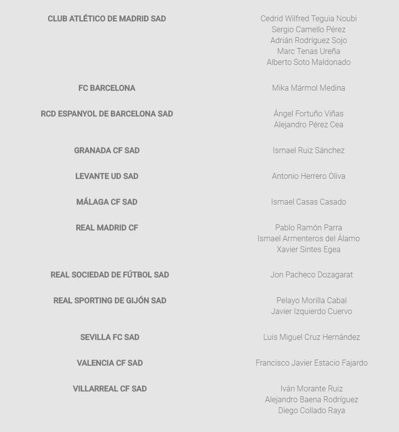 España: Javier Izquierdo, Alejandro Pérez, Ismael Armenteros (Beñat Prados, min. 72), Ismael Ruiz (Xavi Estació, min. 41), Cedric (Toni, min. 41), Mika (Morante, min. 41), Adrián, Collado (Marc Tenas, min. 41), Latasa (Baena, min. 41), Ismael Casas (Sergio Santos, min. 65) y Soto (Jon Pacheco, min. 41).