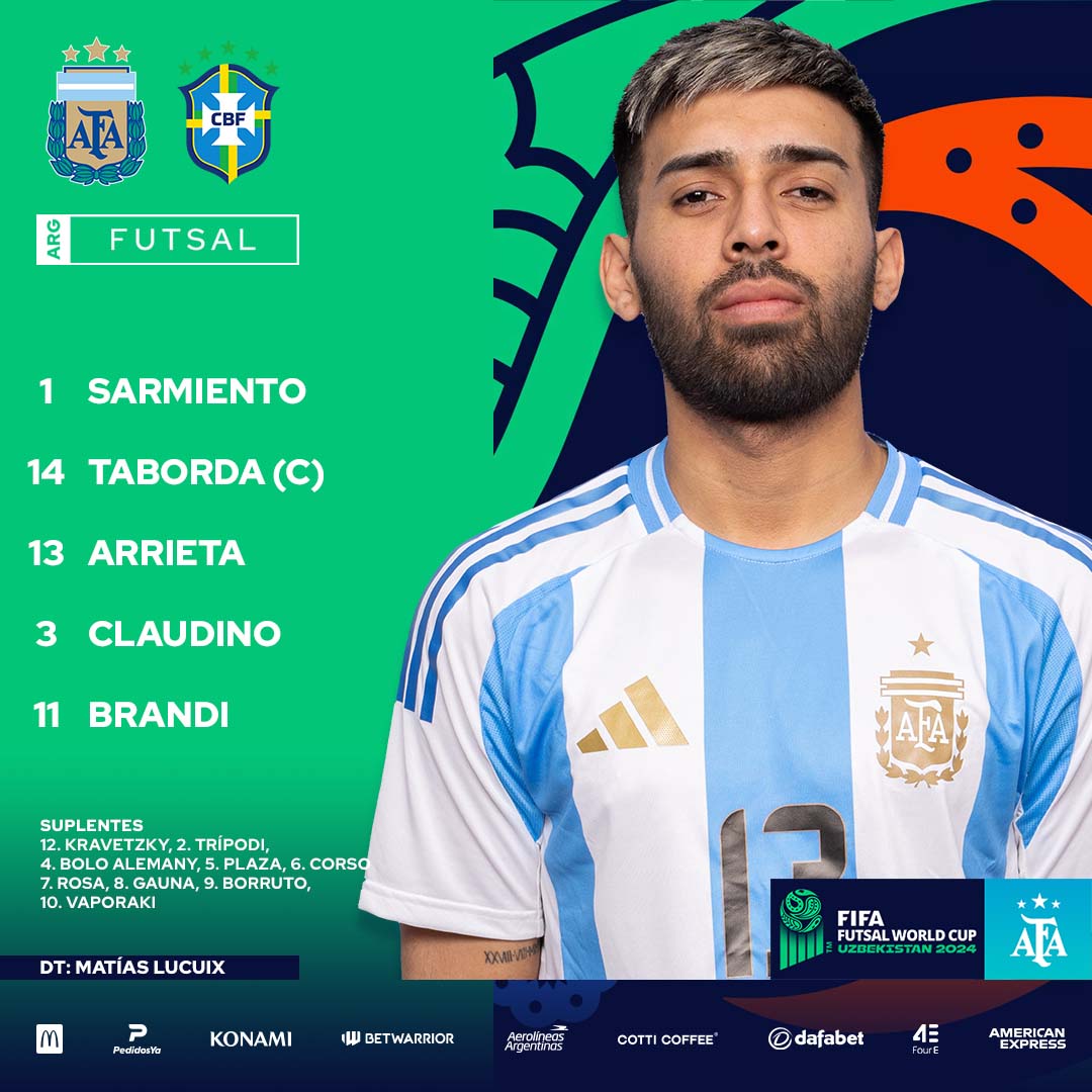 Argentina accede a esta instancia luego de un paso con puntaje ideal en la fase de grupos, con victorias ante Ucrania (7-1), Afganistán (2-1) y Angola (9-5), luego, la Selección superó en octavos de final a Croacia, 2 a 0, con goles de Alan Brandi y Matías Rosa, en cuartos de final a Kazajistán, 6 a 1, con goles de Taborda, Claudino, Arrieta (2), Corso y Bolo Alemany y en semis a Francia, 3 a 2, con goles de Arrieta (2) y Claudino.