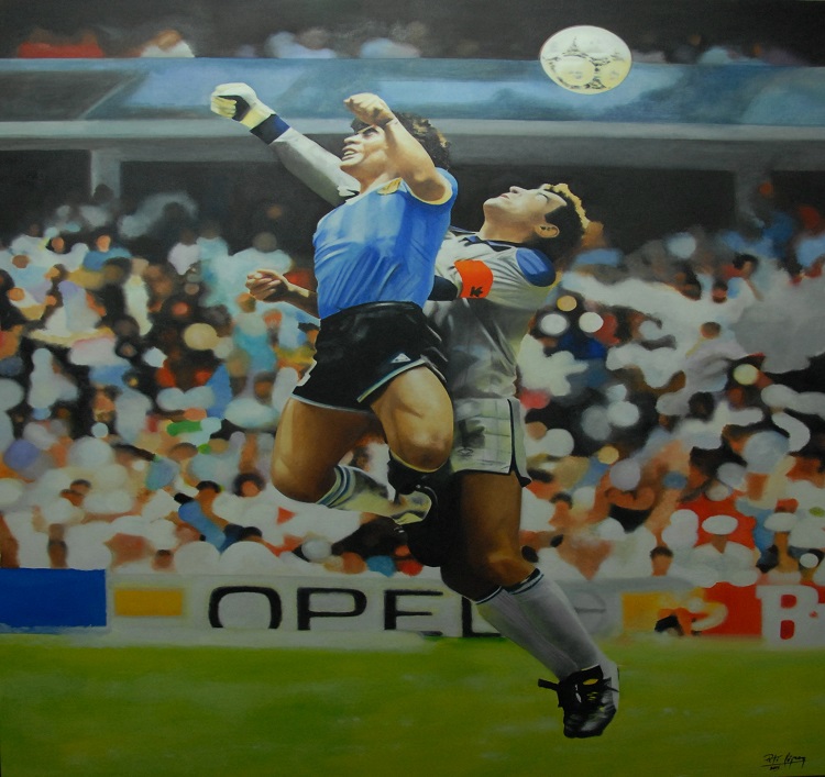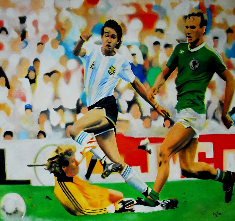 López se inspira en instantes como "El abrazo del alma" (emblemática postal de Tarantini abrazando a Fillol tras consagrarse en 1978) o "El grito final" (destello poético con autoría de Jorge Burruchaga, historia del 3 a 2 sobre Alemania en la final de 1986) para mostrar, a través de sus obras, su vernácula admiración por el fútbol.