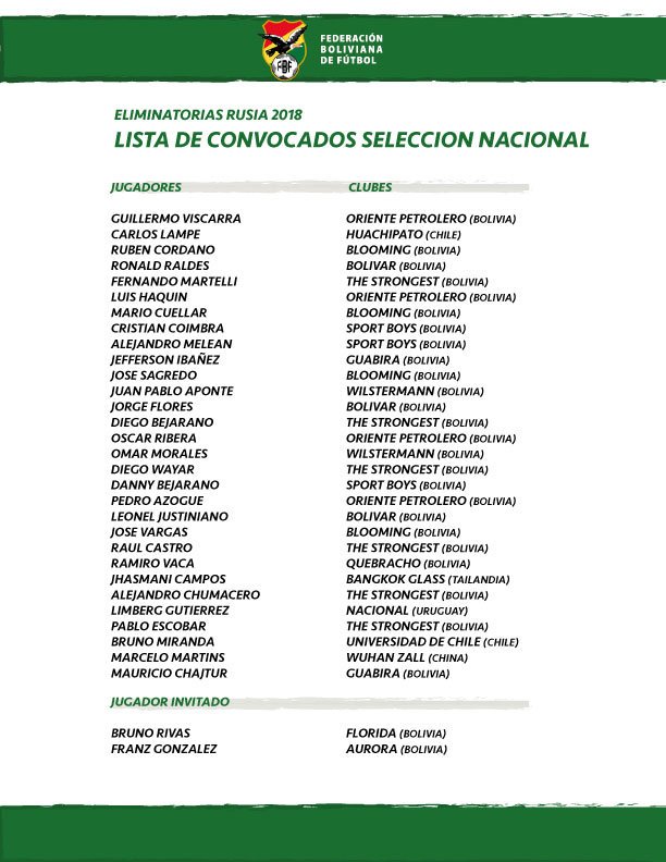 La selección de Bolivia se encuentra penúltima en la clasificación para el Mundial de Rusia 2018: acumula siete unidades. Pero en la altura de La Paz siempre se presentó como un adversario difícil para Argentina. Allí, por Eliminatorias, el elenco nacional disputó 9 encuentros: ganó 3, perdió 4 y empató 2. Mauricio Soria, entrenador del equipo, histórico de su selección y con una carrera de 22 años como futbolista, completamente en su país, guardó a varios de sus jugadores más experimentados (entre ellos Fabio Escobar y Alejandro Chumacero) para el encuentro frente al conjunto que dirige Edgardo Bauza, prueba de la importancia que le otorgó al choque. En el encuentro del jueves 23 ante Colombia en Barranquilla, Bolivia tropezó 1-0.