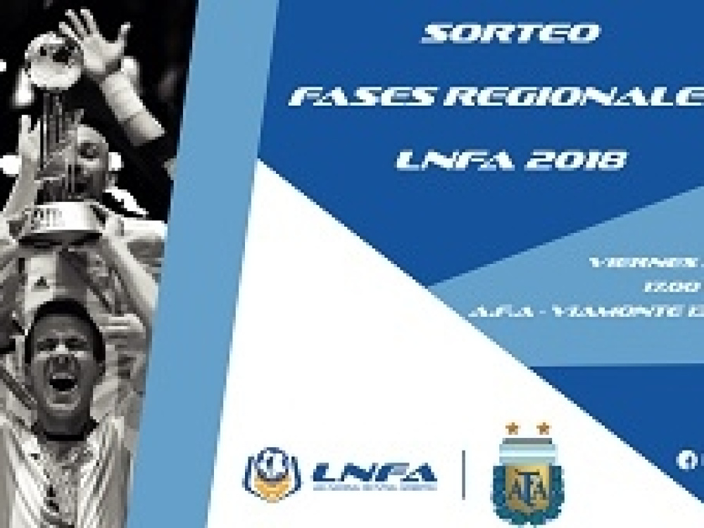La continuidad de la primera edición histórica de la Liga Nacional de Futsal Argentina (LNFA) dará el próximo viernes un nuevo paso con el sorteo de los grupos de las cinco Fases Regionales que se disputarán entre el 17 de agosto y el 14 de octubre próximos.