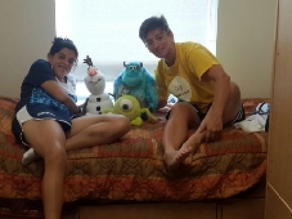 Lo bueno es que la cábala apareció: Florencia Quiñones y Noelia Espíndola acomodaron sus peluches cábala antes de prepararse para la charla técnica con el Vasco. Un buen paso. ¡Vamos Argentina!