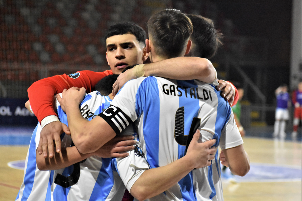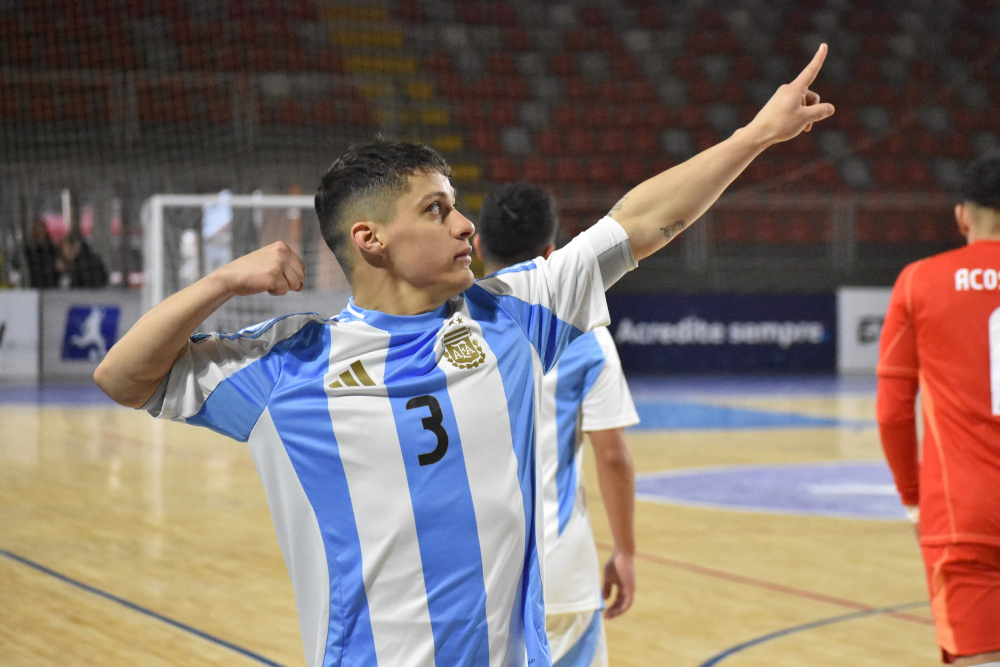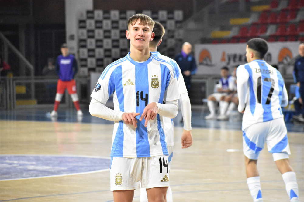 Primer tiempo intenso en el que Argentina supo sacar ventajas gracias a los tantos convertidos por Rodrigo Álvarez (en dos oportunidades), Iván Monteros y Matías Soñer, quien destruyó la red de un bombazo al ángulo para cerrar la etapa 4-0 arriba.