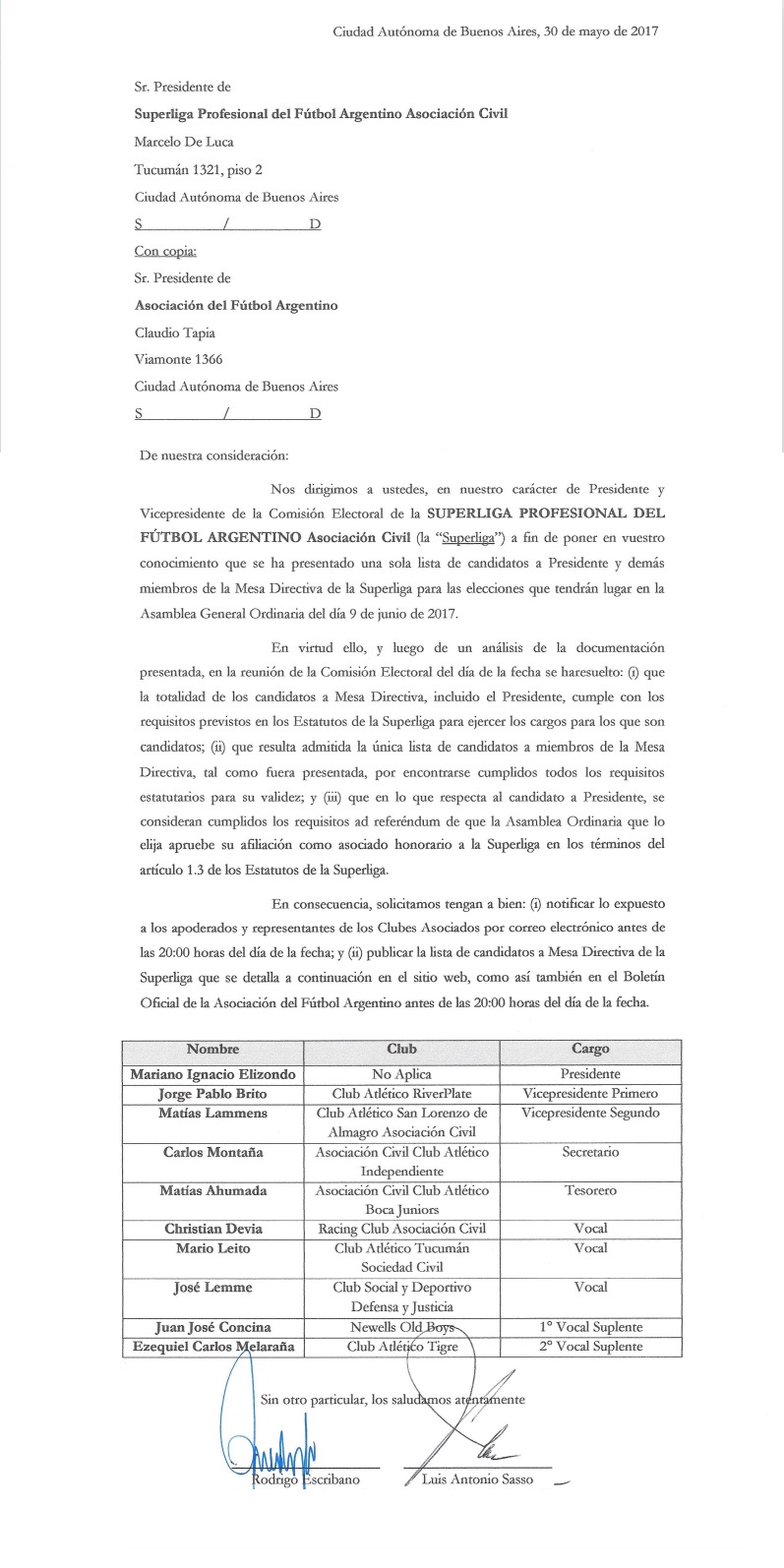 Lista de candidatos Superliga Profesional