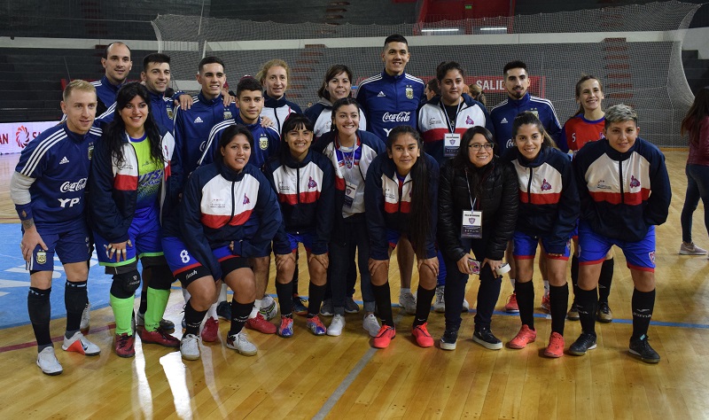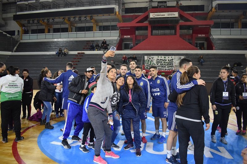 Una vez terminada la práctica, los integrantes de la Selección se sacaron fotos y saludaron a las jugadoras que están jugando el Torneo Nacional de Futsal Femenino en el mismo estadio.
