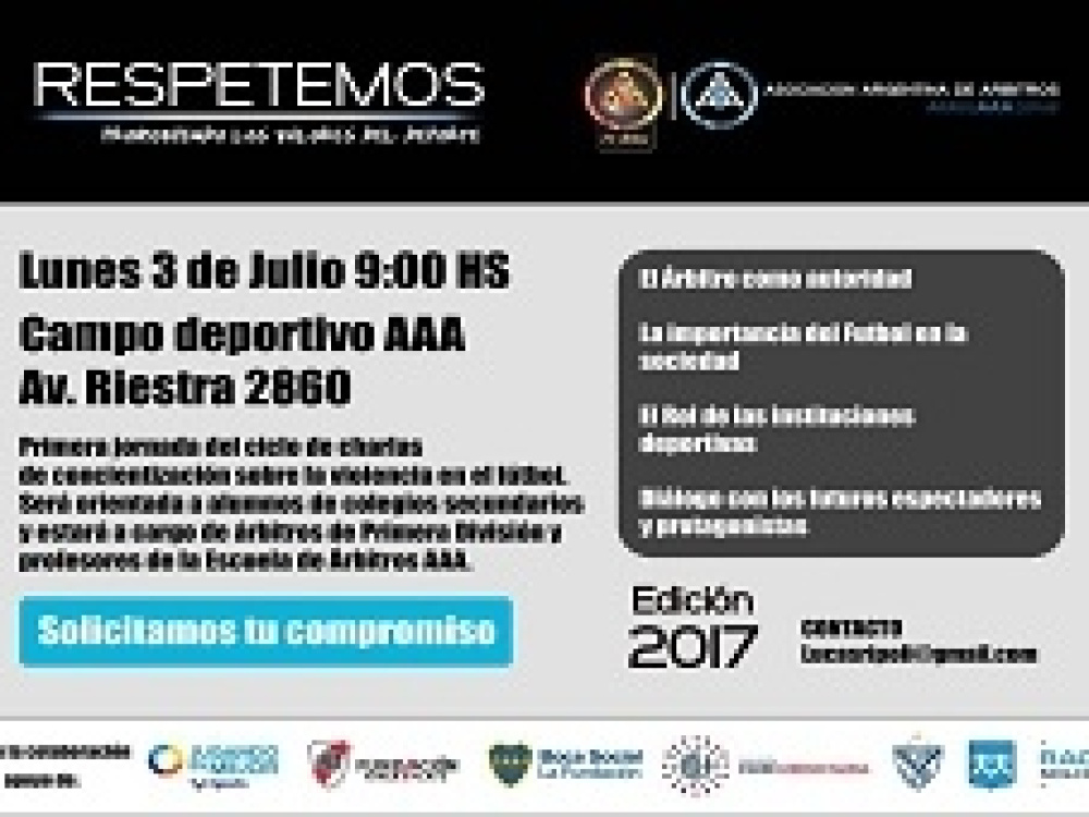 La charla, orientada a alumnos de colegios secundarios, se llevará a cabo en el Campo deportivo AAA (Avenida Riestra 2660, Capital Federal). La misma estará a cargo de árbitros de Primera División y profesores de la Escuela de Árbitros AAA, quienes desarrollarán los siguientes tópicos:
