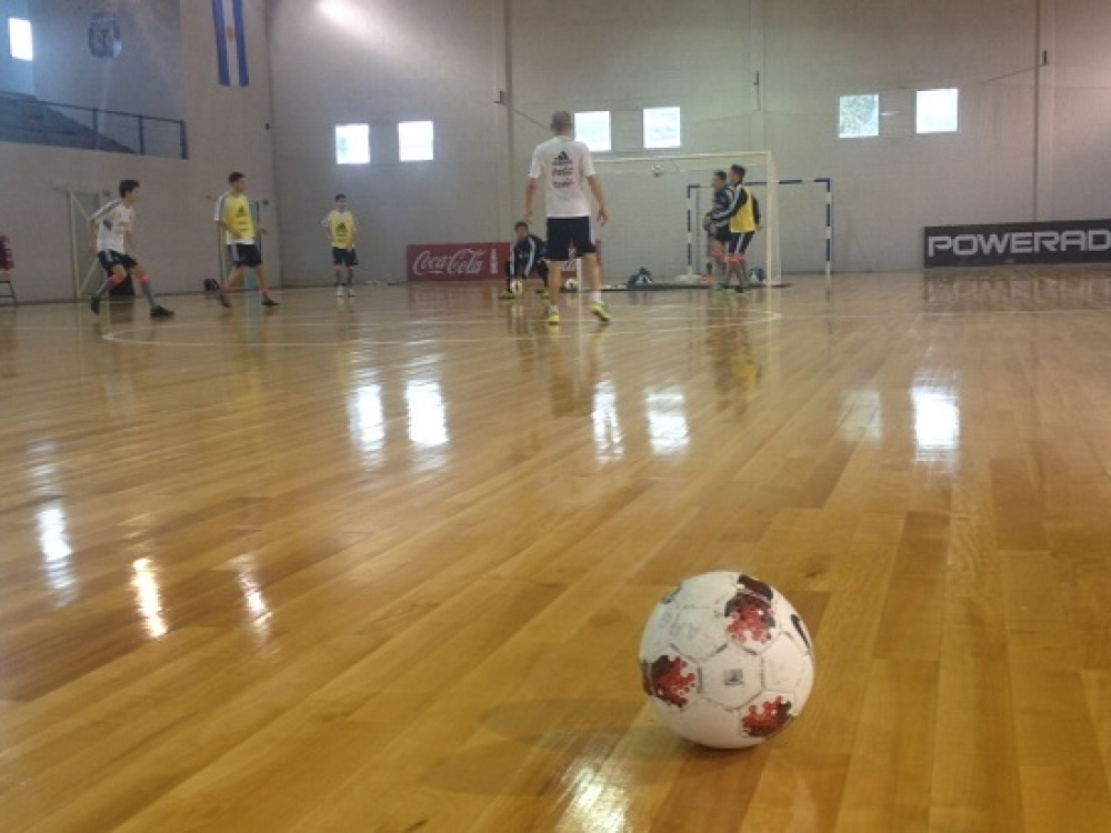 Cancha de 20 metros por 18. Así se prepara la Selección Argentina sobre el parquet del Predio Julio Grondona. Es que la Copa América está a la vuelta de la esquina. Y, por ello, se pule el toque y la movilidad en espacios reducidos, todo monitoreado por el entrenador Diego Giustozzi. Antes, claro, calentamiento físico para estar a punto a la hora de coordinar movimientos tácticos, tanto en ofensiva como en defensa.